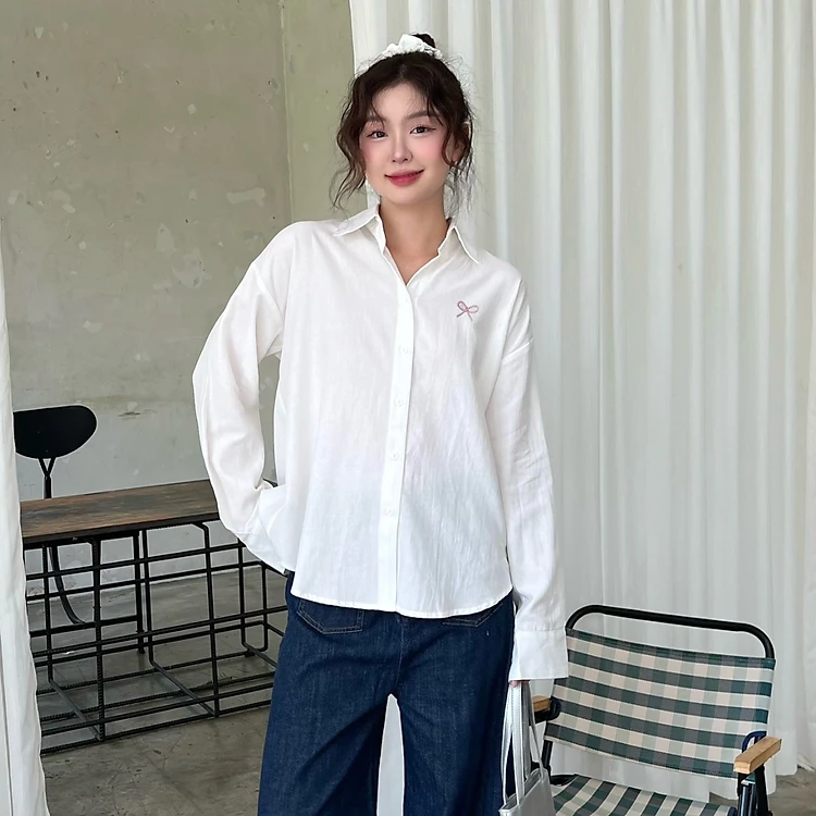 Áo sơ mi nữ thêu nơ trẻ trung nữ tính thích hợp đi làm đi chơi Bow Miều Est.2013