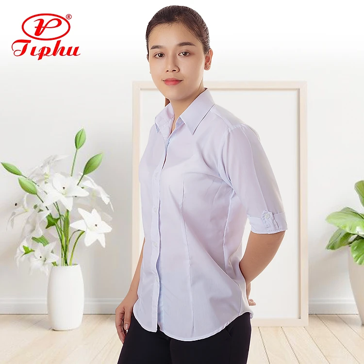 Áo sơ mi nữ trắng tay dài, đồng phục học sinh, đồng phục công sở, size từ 40-80kg, chất liệu KT Silk mềm mại