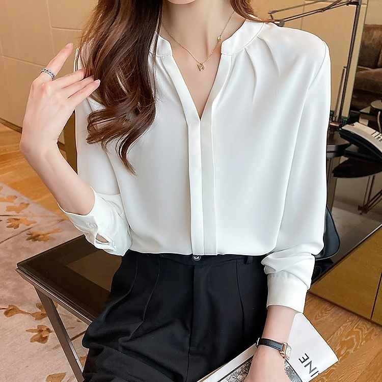 ÁO SƠ MI NỮ TRẮNG TRƠN CHẤT LIỆU MỀM MỊN TAY DÀI CỔ TÀU TRẺ TRUNG HAINT BOUTIQUE S08