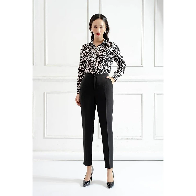 Áo sơ mi nữ Tri'C Luxury họa tiết tay dài Đen S011119