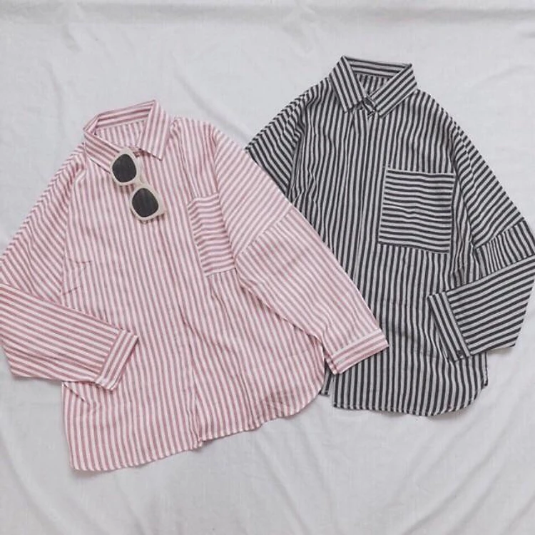 Áo sơ mi Oversize sọc dọc phối túi sọc ngang (có 4 màu)