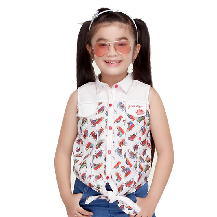• Áo Sơ Mi Sát Nách Bé Gái In Chiếc Giày 8AX031 - Trắng với kiểu thiết kế thắt dây trước bụng, trang trí 2 túi giả rất phù hợp với nhưng buổi du lịch, tham quan hoặc vui chơi.