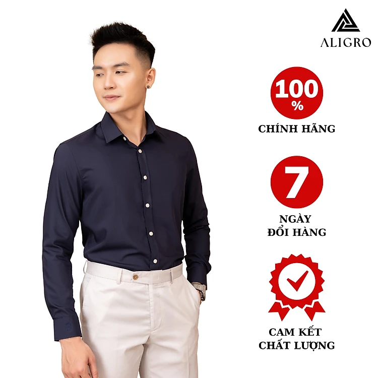 Áo sơ mi slimfit dài tay navy Aligro ALGS226