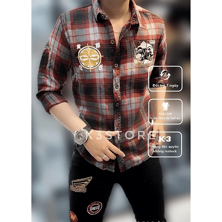 ️ Hướng dẫn sử dụng sản phẩm áo sơ mi tay dài nam sọc caro evisu was ẩn đỏ đen chất kaki dày dặn hàng thêu logo full áo K3 STORE: