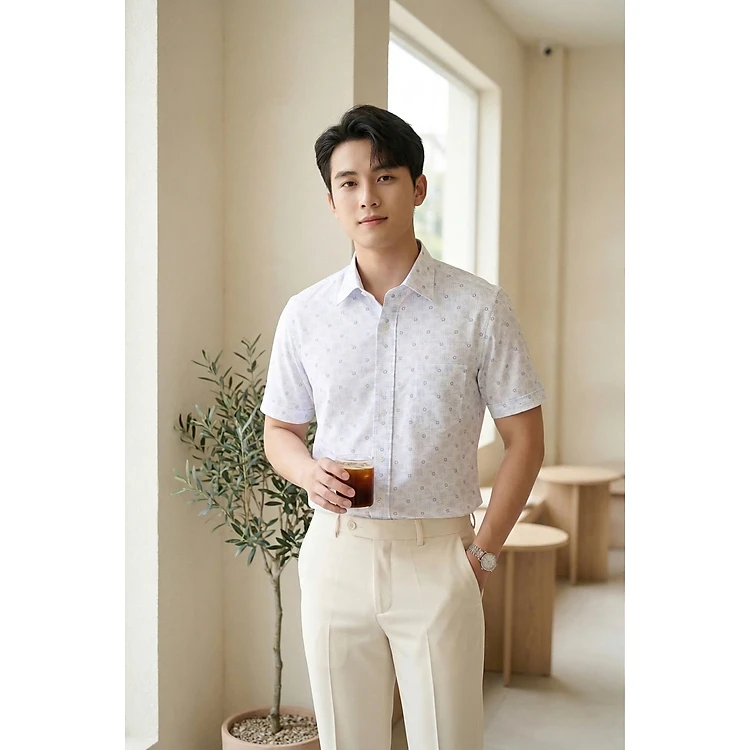 Áo sơ mi nam tay ngắn họa tiết