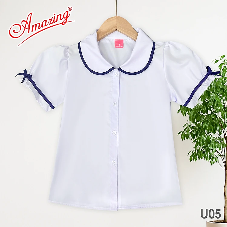 Áo sơ mi trắng cổ lá sen viền cao cấp cho bé gái đến trường, big size đến 70kg