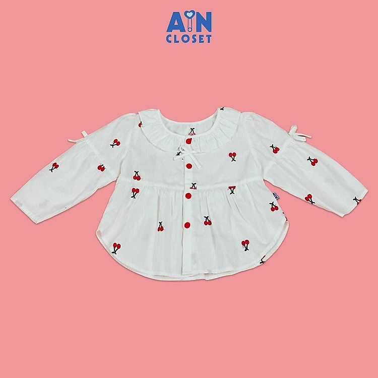 Áo Sơ mi Trắng Dài tay bé gái họa tiết Cherry Đỏ Cotton - AICDBGHEIAMG - AIN Closet