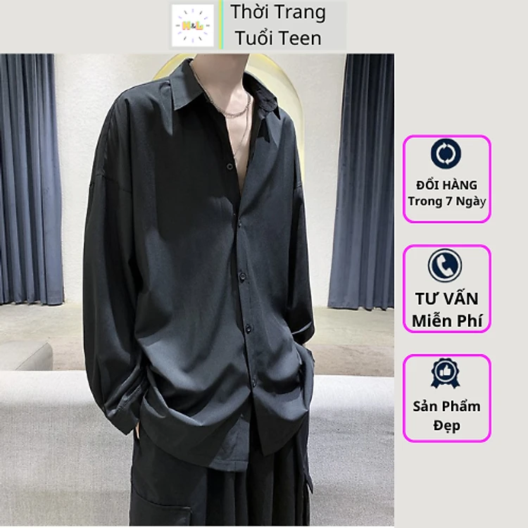 Áo Sơ Mi Trắng Form Rộng Unisex Nam Nữ Tay Dài Hàn Quốc Kiểu Cổ Bẻ Vải Lụa Nhiều Màu - SMD01