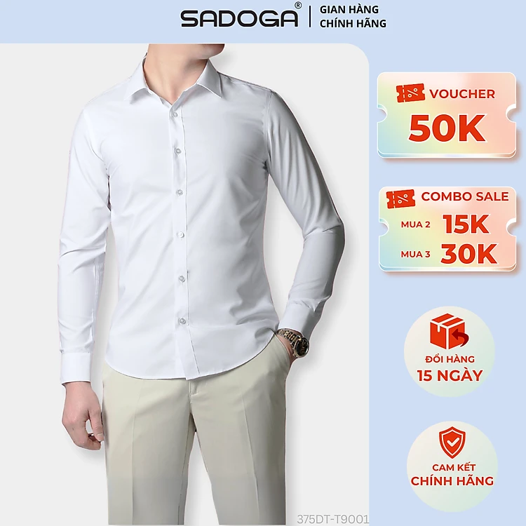 Áo Sơ Mi Trắng Sadoga Dài Tay Regular Fit, Thấm Hút Mồ Hôi, Chất Liệu Cao Cấp T9001