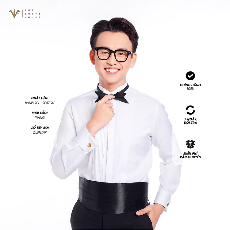 ÁO SƠ MI TRẮNG TUXEDO, KHUY ẨN, CỔ TAY CUFFLINK, CHẤT LIỆU BAMBOO CAO CẤP, THƯƠNG HIỆU THE SUITS HOUSE