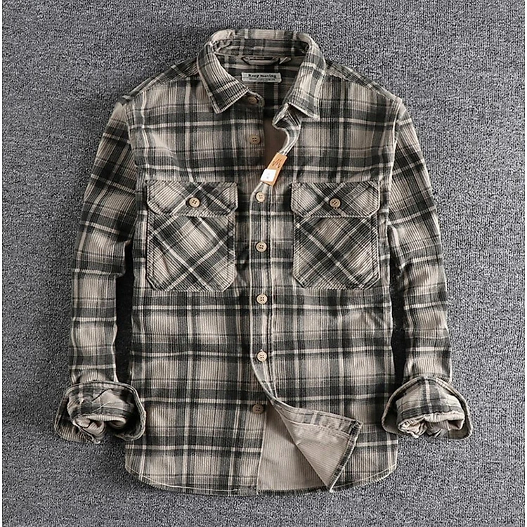 Áo sơ mi vải nhung phong cách Retro_Biker_Army