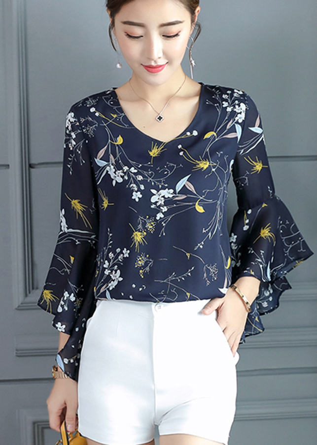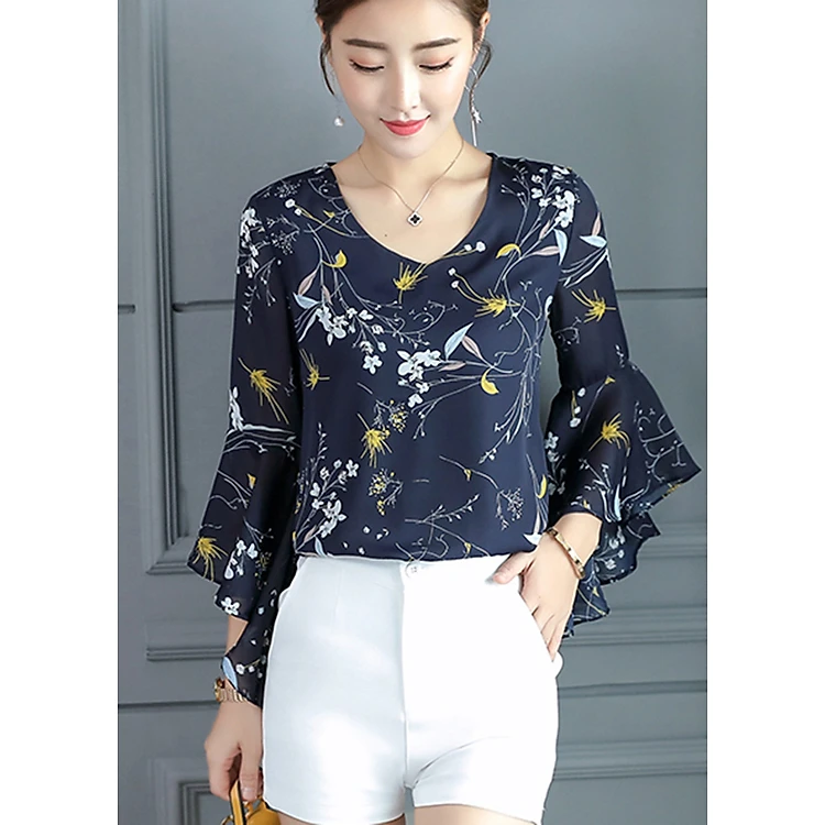 - Áo sơ mi voan hoa tay loe điệu đà LAH fashion được thiết kế thanh nhã với kiểu áo form rộng trẻ trung.