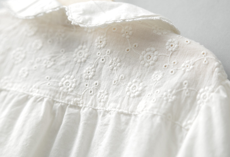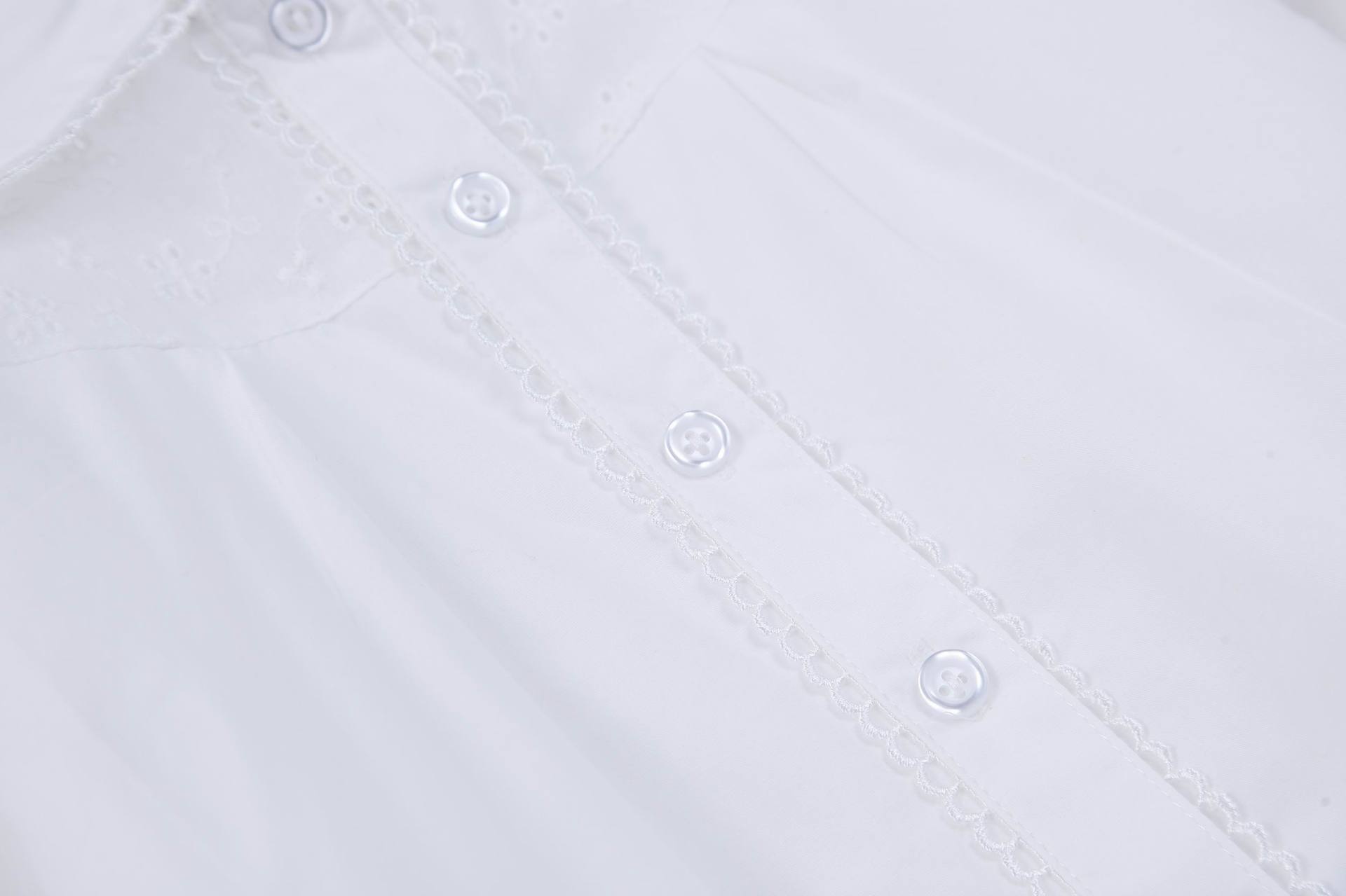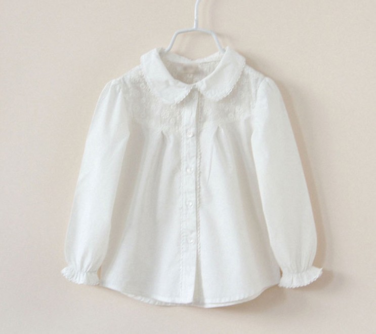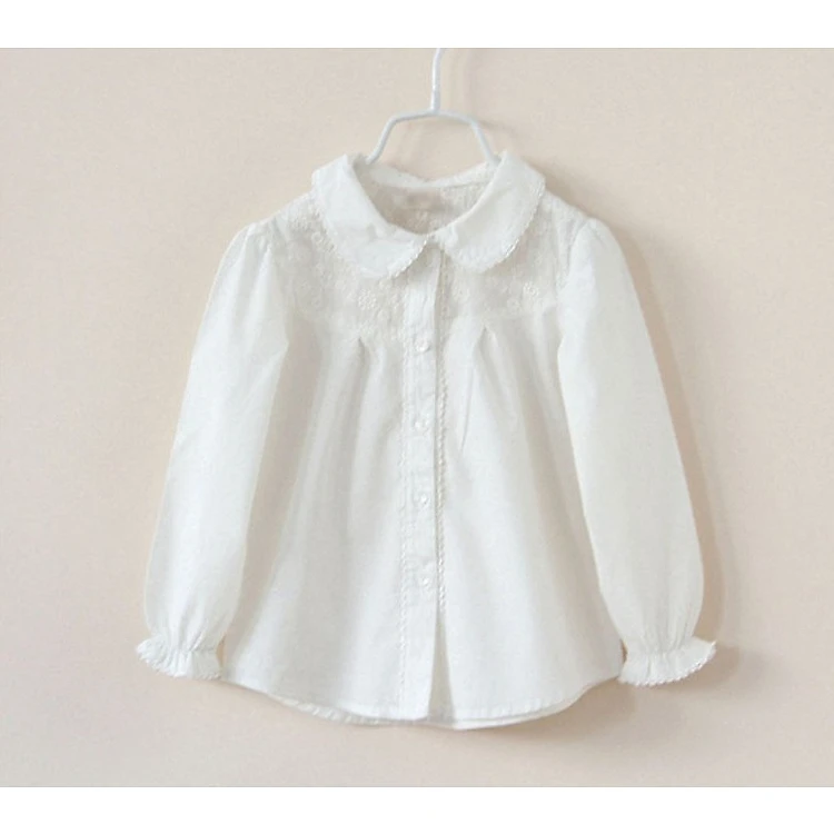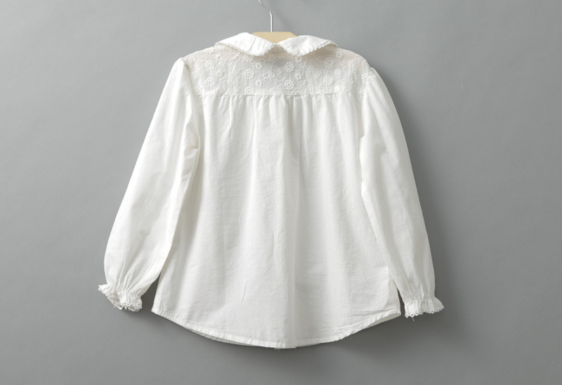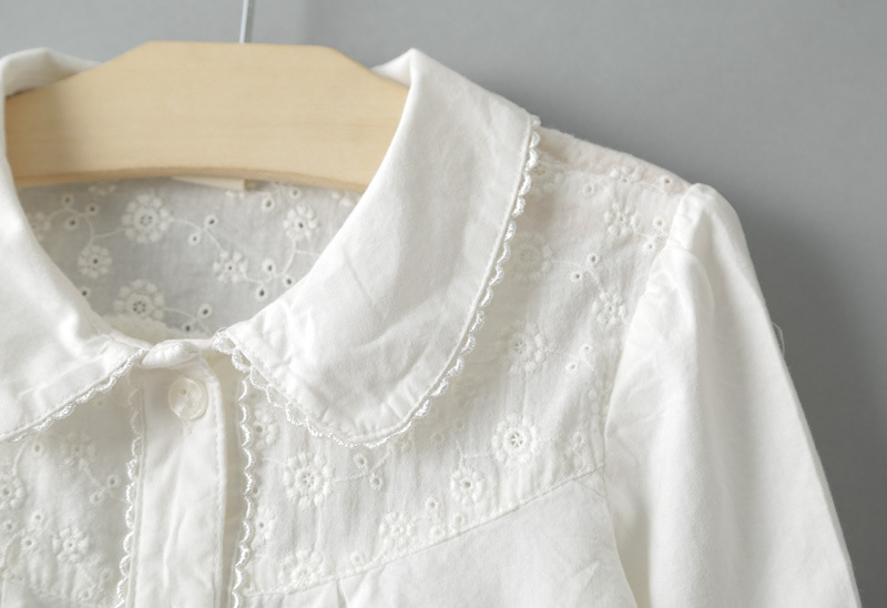 Áo sơmi bé gái màu trắng pha ren, cổ sen TE1979