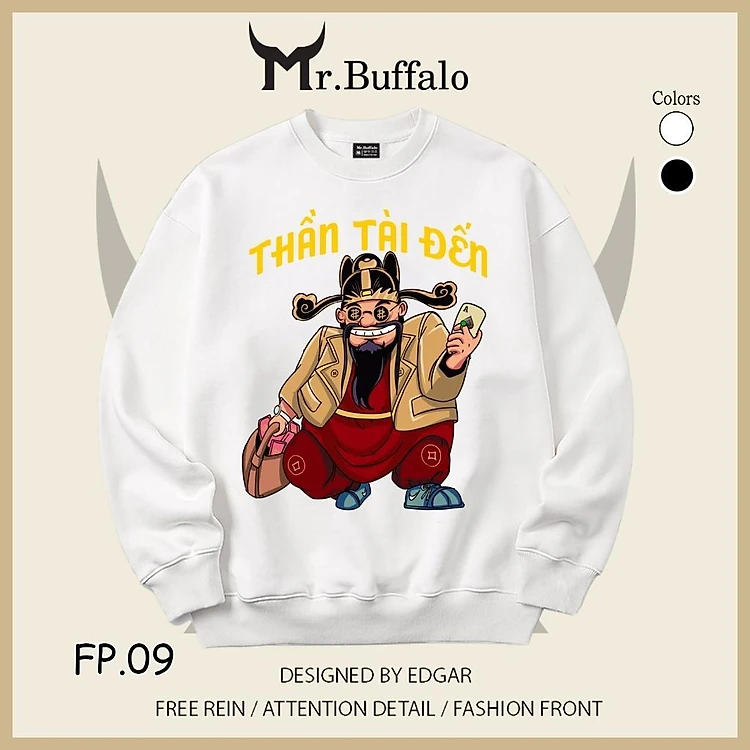 Áo Sweater "chơi tết" Thần Tài Đến size 40kg tới 100kg Mr.Buffalo