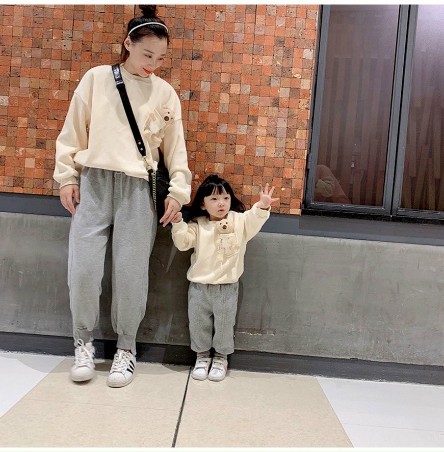 Thiết kế Áo sweater gia đình in gấu lớn cao cấp phong cách đường may tỉ mỉ.