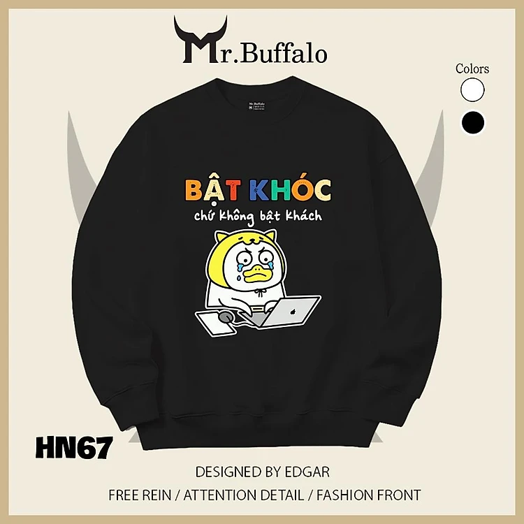Áo sweater thu đông form rộng in chữ Hài Hước " Bật Khóc Chứ Không Bật Khách " Mr.buffalo