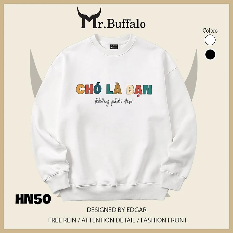 Áo sweater thu đông form rộng in chữ Hài Hước "Chó là Bạn, không phải tui" Mr.buffalo