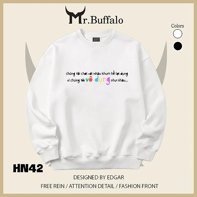 Áo sweater thu đông form rộng in chữ hài hước "Chúng tôi Vô Dụng Như nhau" Mr.buffalo