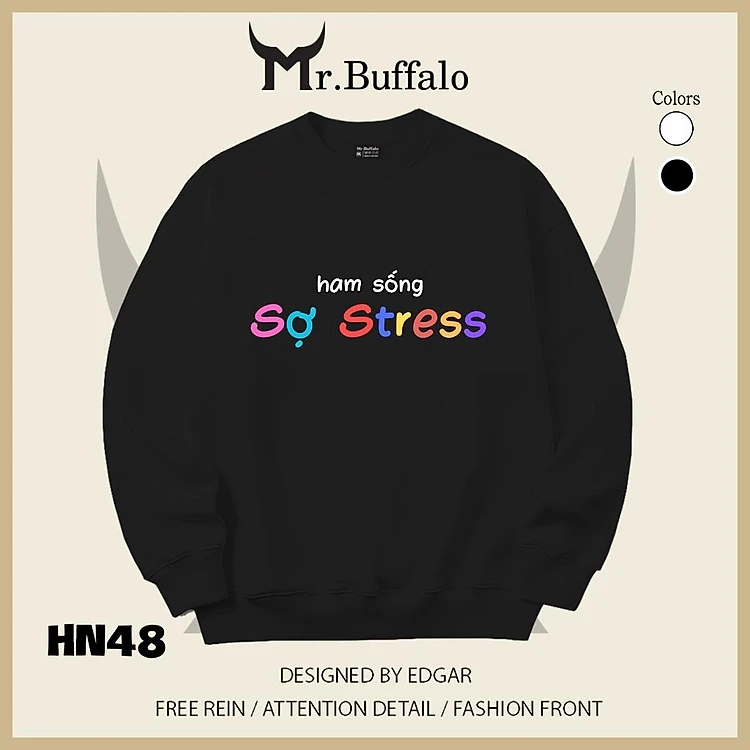 Áo sweater thu đông form rộng in chữ Hài Hước "Ham Sống Sợ Stress" Mr.buffalo