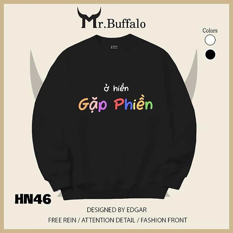 Áo sweater thu đông form rộng in chữ Hài Hước "Ở Hiền Gặp Phiền" Mr.buffalo