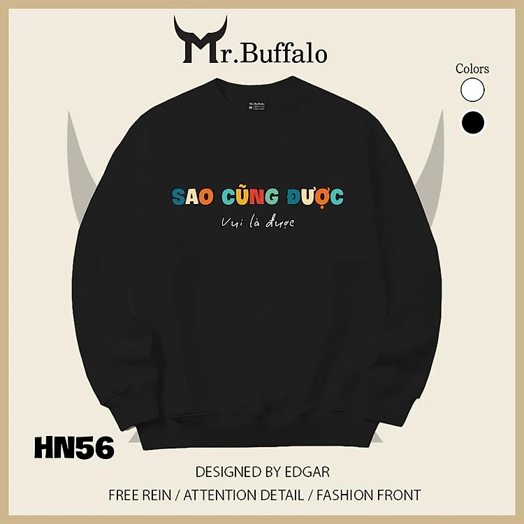 Áo sweater thu đông form rộng in chữ Hài Hước "Sao cũng được, Vui là được" Mr.buffalo