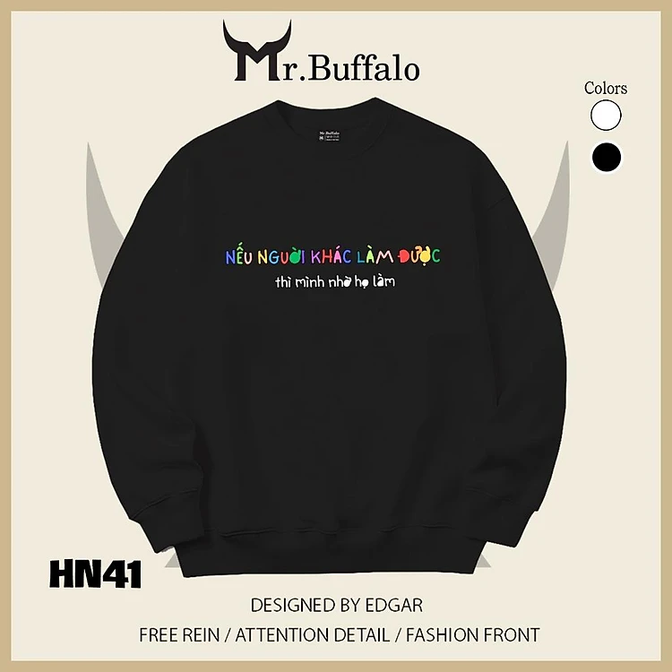 Áo sweater thu đông form rộng in chữ" Nếu người khác làm được thì mình nhờ họ làm" Mr.buffalo