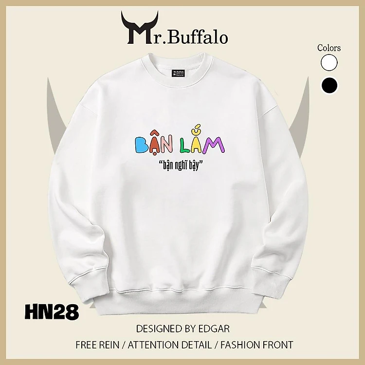 Áo sweater thu đông form rộng in hình hài hước "Bận Lắm" Mr.buffalo