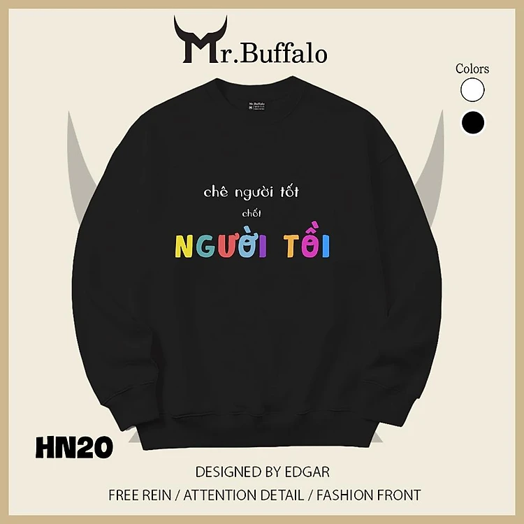 Áo sweater thu đông form rộng in hình hài hước "Chê Người Tốt, Chốt Người Tồi" Mr.buffalo