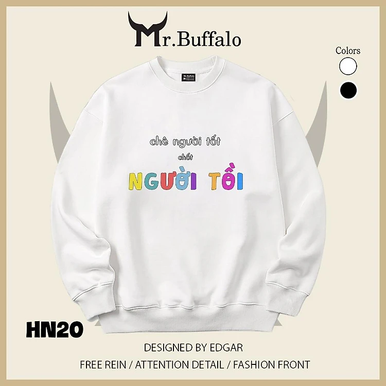 Áo sweater thu đông form rộng in hình hài hước "Chê Người Tốt, Chốt Người Tồi" Mr.buffalo