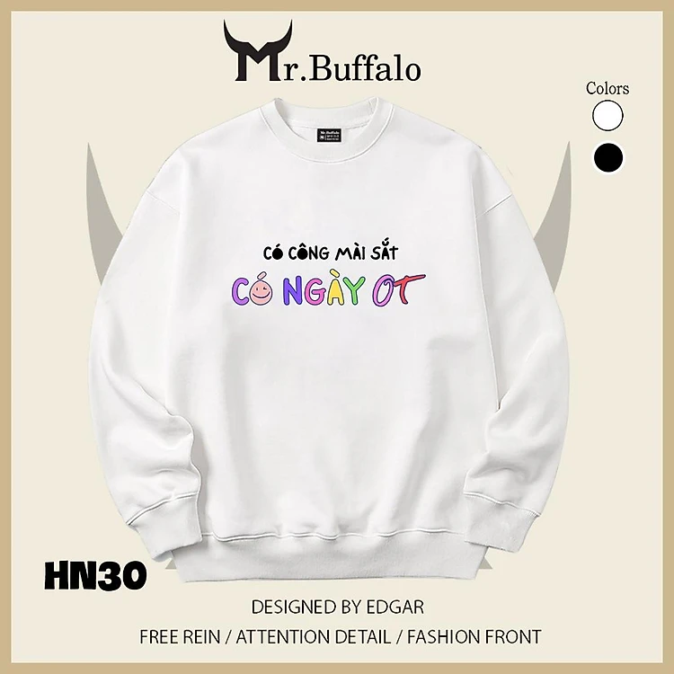 Áo sweater thu đông form rộng in hình hài hước "Có Công Mài Sắt Có Ngày OT" Mr.buffalo