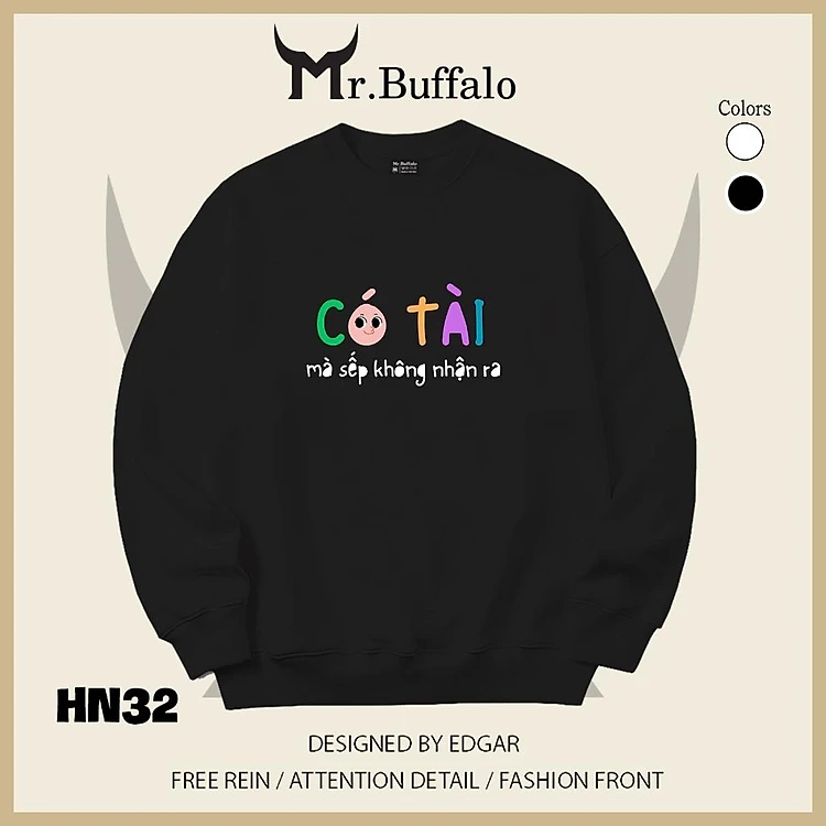 Áo sweater thu đông form rộng in hình hài hước "Có Tài mà sếp không nhận ra" Mr.buffalo