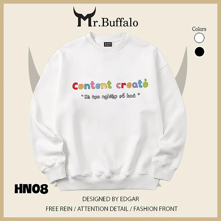 Áo sweater thu đông form rộng in hình hài hước "Content creator" Mr.buffalo