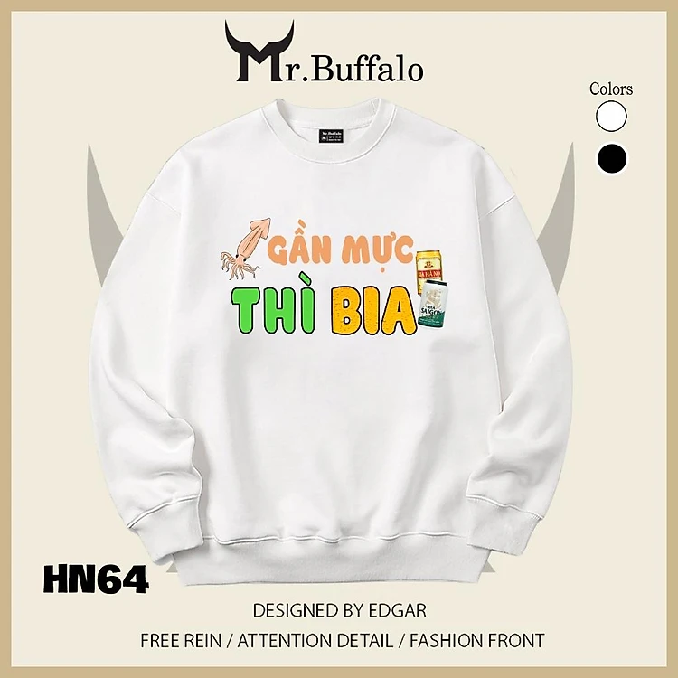 Áo sweater thu đông form rộng in hình hài hước đi nhậu Mr.buffalo