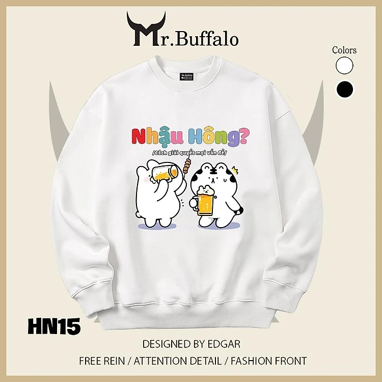 Áo sweater thu đông form rộng in hình hài hước đi nhậu Mr.buffalo
