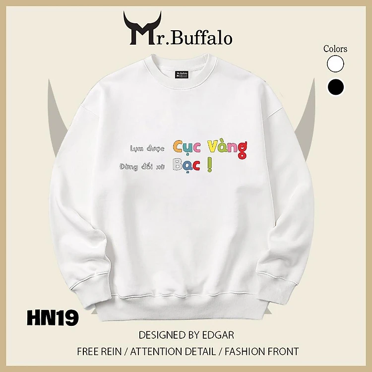 Áo sweater thu đông form rộng in hình hài hước "Lụm được cục Vàng, đừng đối sử Bạc" Mr.buffalo