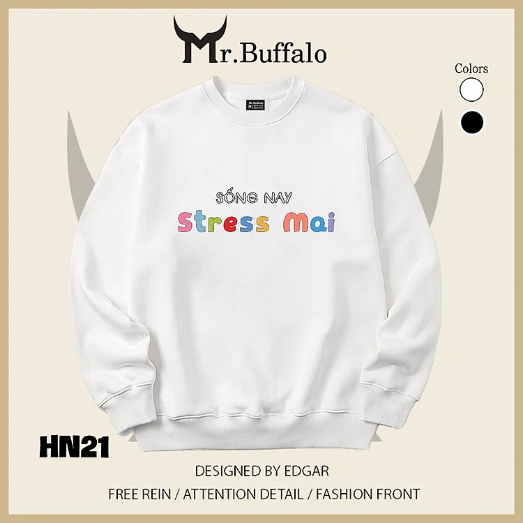Áo sweater thu đông form rộng in hình hài hước "Sống Nay Stress Mai" Mr.buffalo