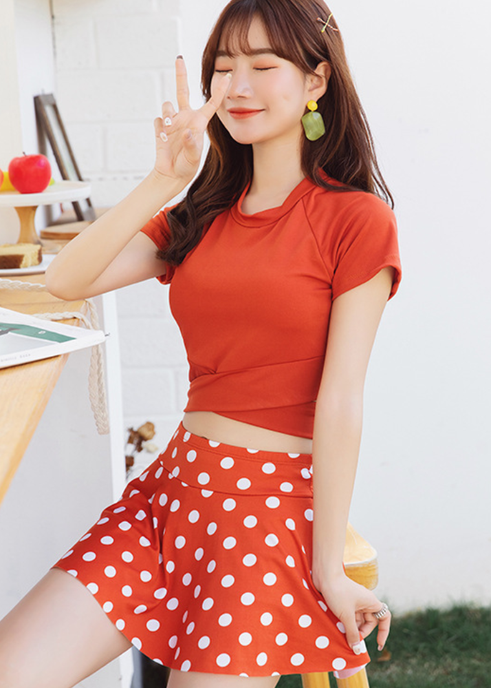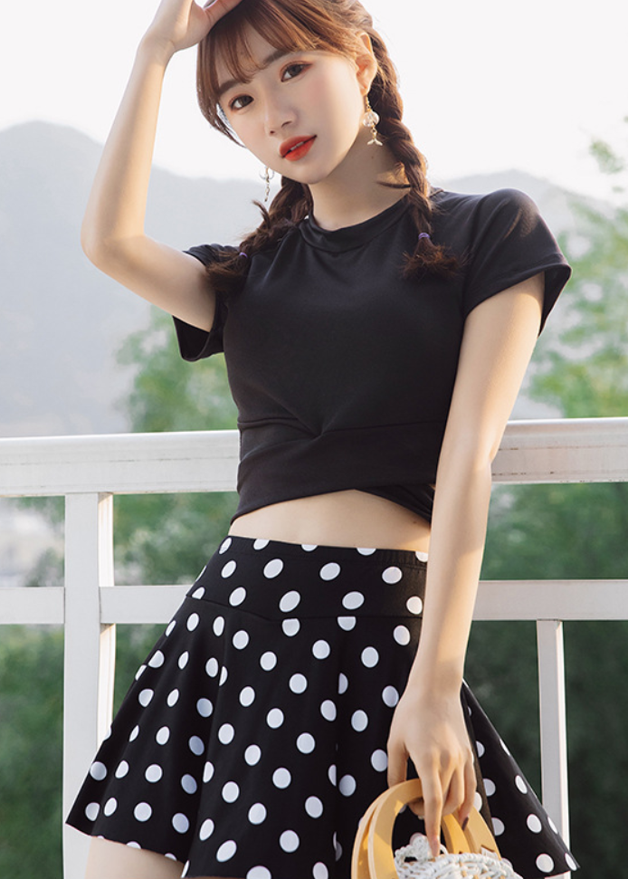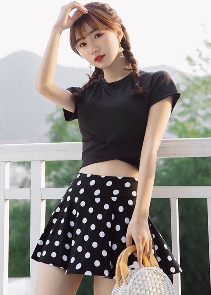 Áo Tắm 2 Mảnh Áo Croptop Váy Chấm Bi AT141 MayHouse
