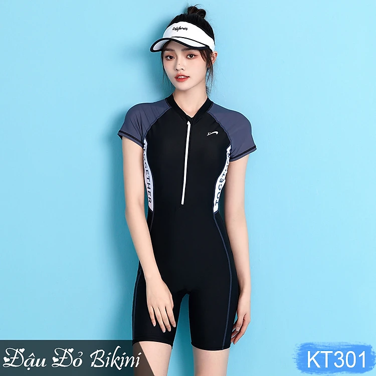 Áo tắm liền thân quần đùi dài nữ, thiết kế dấu bụng và đùi tốt, đồ bơi khoá kéo trước tiện lợi, chất thun bơi lạnh cao cấp dày mát mịn đẹp, có size lớn | KT301