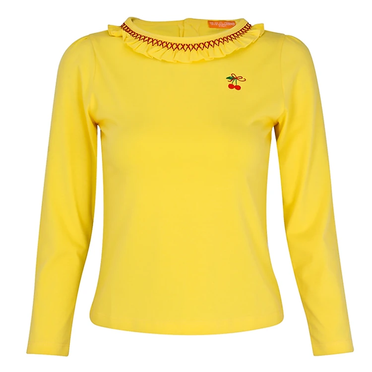 - Phần cổ được tạo điểm nhấn đặc biệt với viền bèo tinh tế.