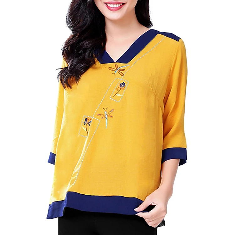 Áo Thêu Cổ V Oversize An Thủy 686 - Vàng