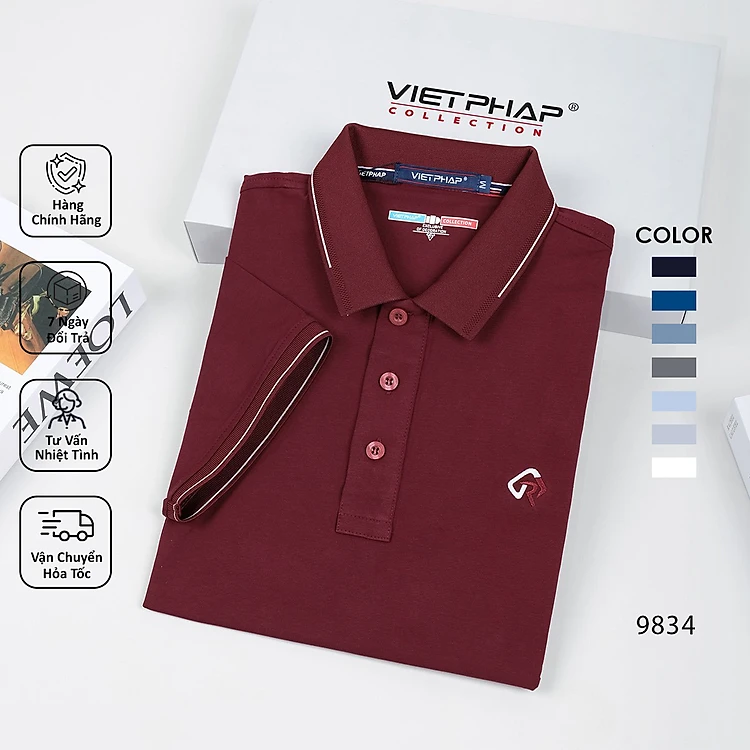 Áo Polo Nam VIỆT PHÁP Form Luxury - Thun 4 Chiều Trơn , lịch lãm, sang trọng 9834