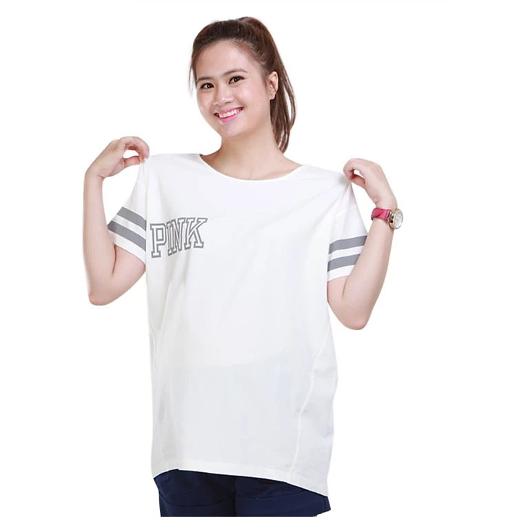 Áo Thun Bầu Viền Tay AnnaNina 506960WT PINK - Trắng