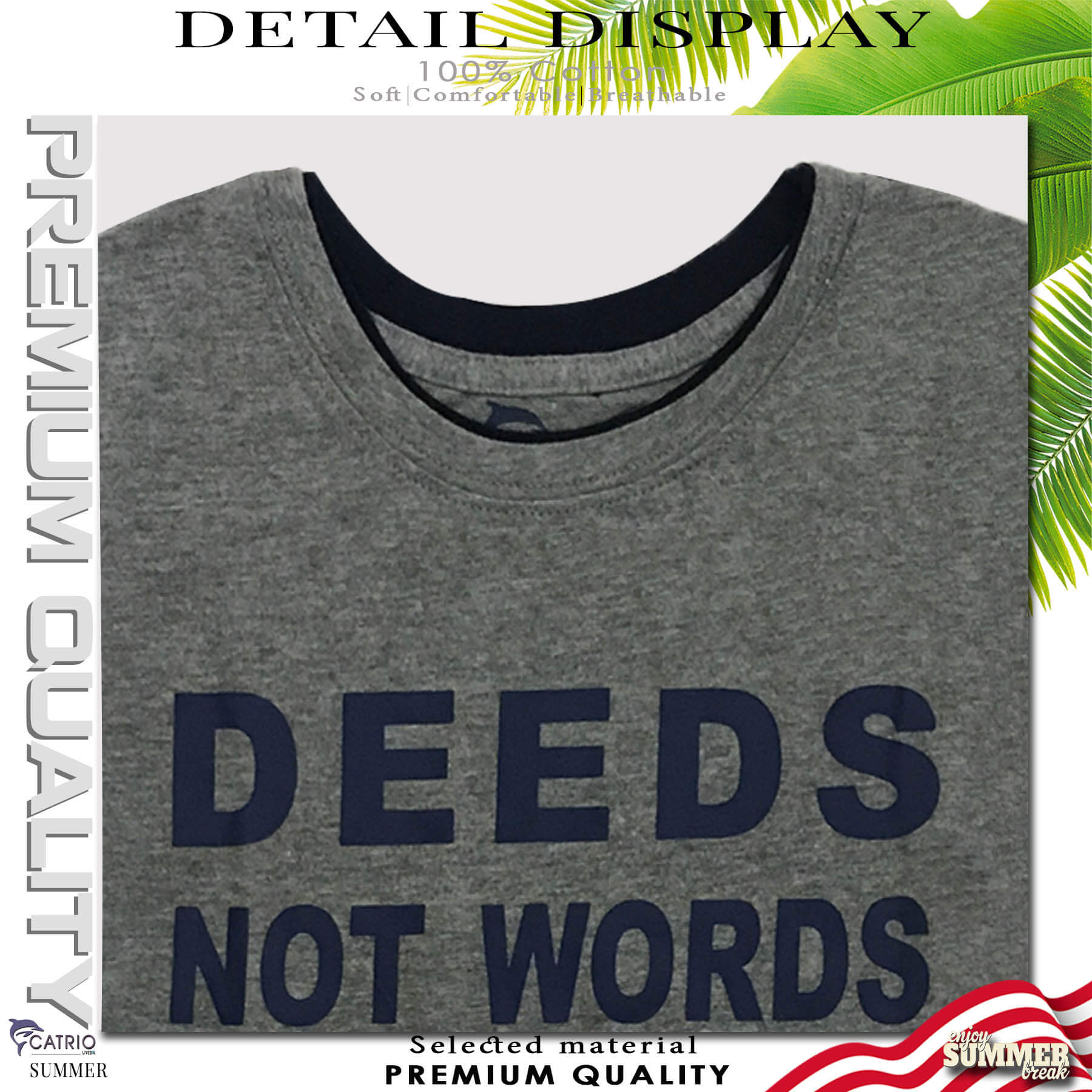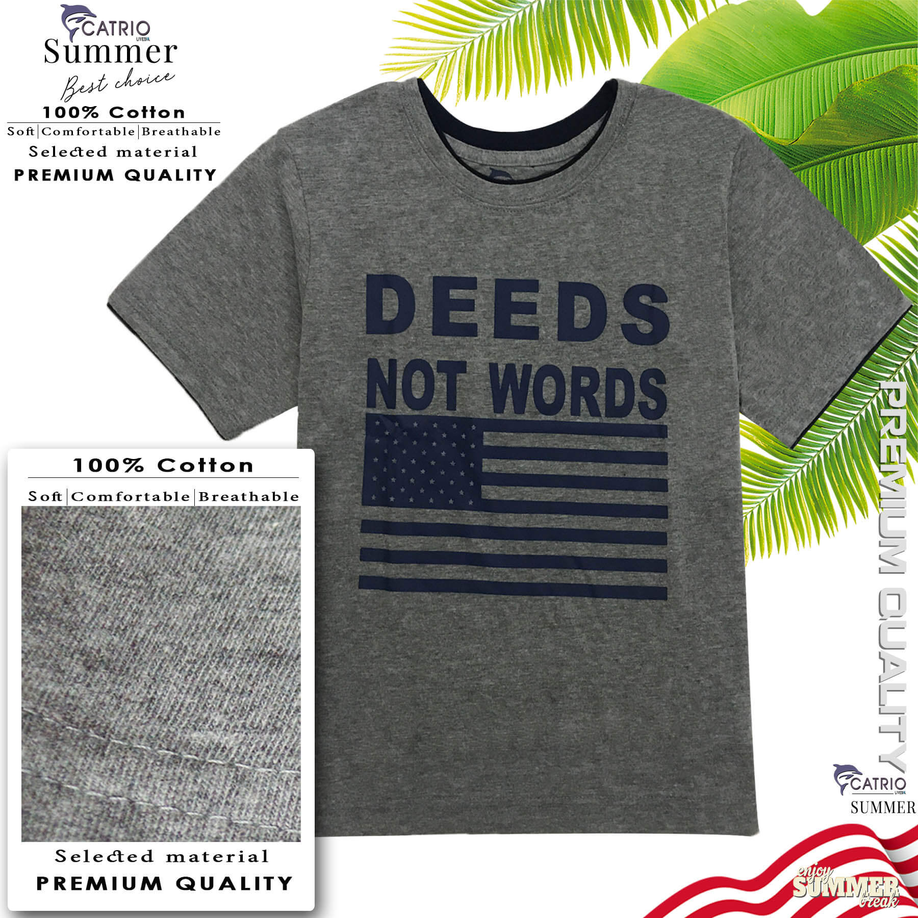 ÁO THUN BÉ TRAI NGẮN TAY CATRIO in DEEDS là áo phông trẻ em từ 9 tuổi đến 18 tuổi (30kg đến 70kg) màu XÁM, chất liệu 100% cotton an toàn, áo thun bé trai thuộc BST quần áo thời trang trẻ em CATRIO