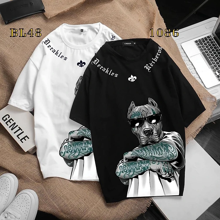 \Áo thun chó xăm tay lỡ nam nữ, áo phông form rộng unixe chất cotton mát mịn thấm hút mồ hôi BIKEN