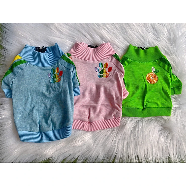Áo thun cổ cao có tay họa tiết xinh xắn vải xịn - có dây kéo dành cho chó mèo