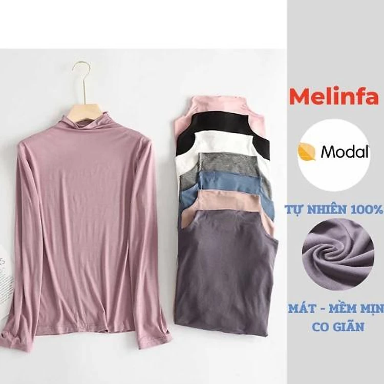 Áo thun cổ lọ dài tay nữ vải Modal ( gỗ sồi) tự nhiên thân thiện co giãn thoải mái mặc mùa thu đông mã VAA0335