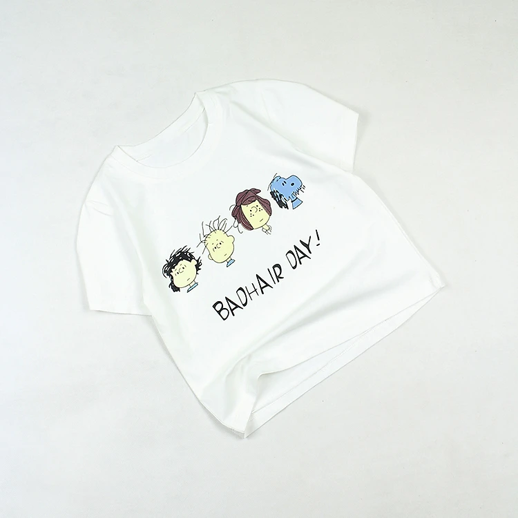 - Áo thun croptop in cartoon cho bé gái cổ tròn tay ngắn 0.5-13 tuổi được may từ vải thun 100% cotton 4c.