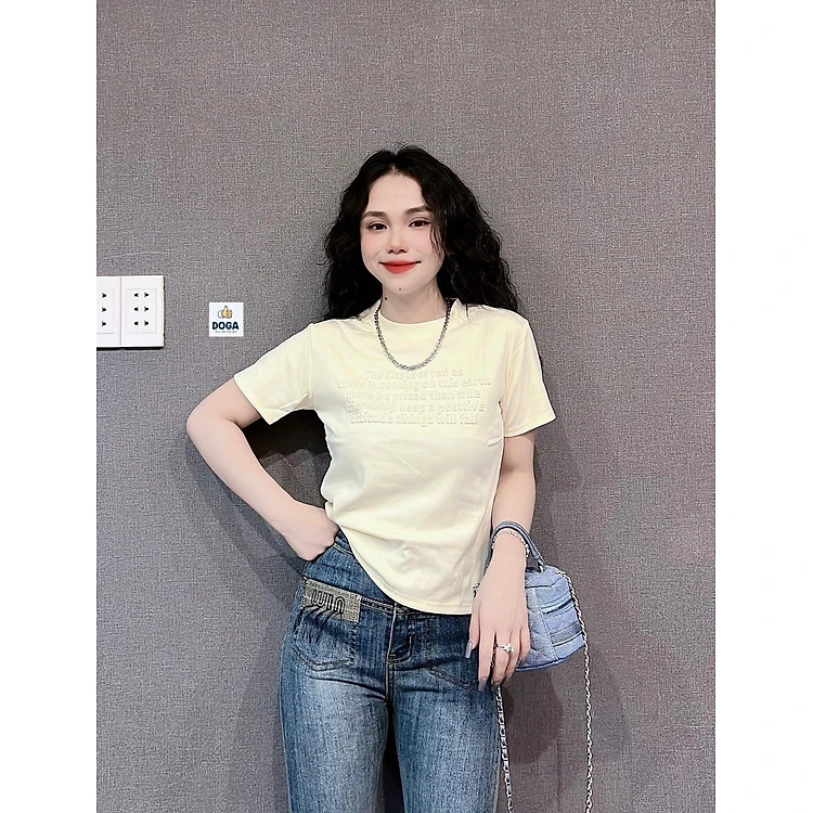 Áo Thun dáng baby tee có size 35kg đến 70kg chất BORIP COTTON Xịn chữ dập nổi điểm nhấn tôn dáng nhiều màu M173