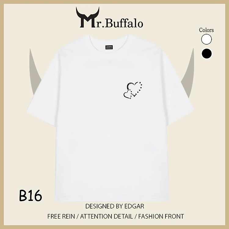 Áo Thun Đôi, Cặp Mr.Buffalo trái tim đôi Tshirt Cotton 100% có bigsize Unisex Local Brand B16