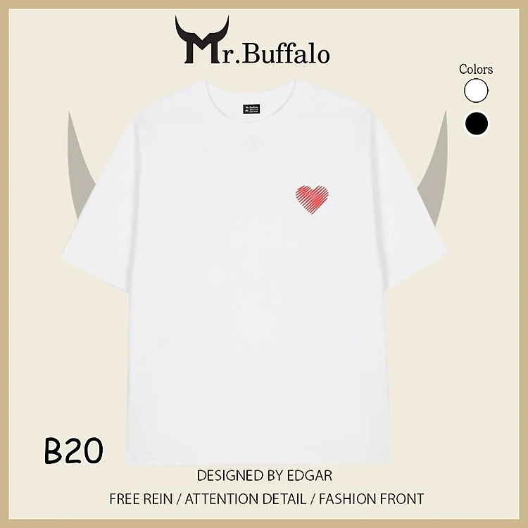 Áo Thun Đôi, Cặp Mr.Buffalo "Trái tim" Tshirt Cotton 100% có bigsize Unisex Local Brand B20